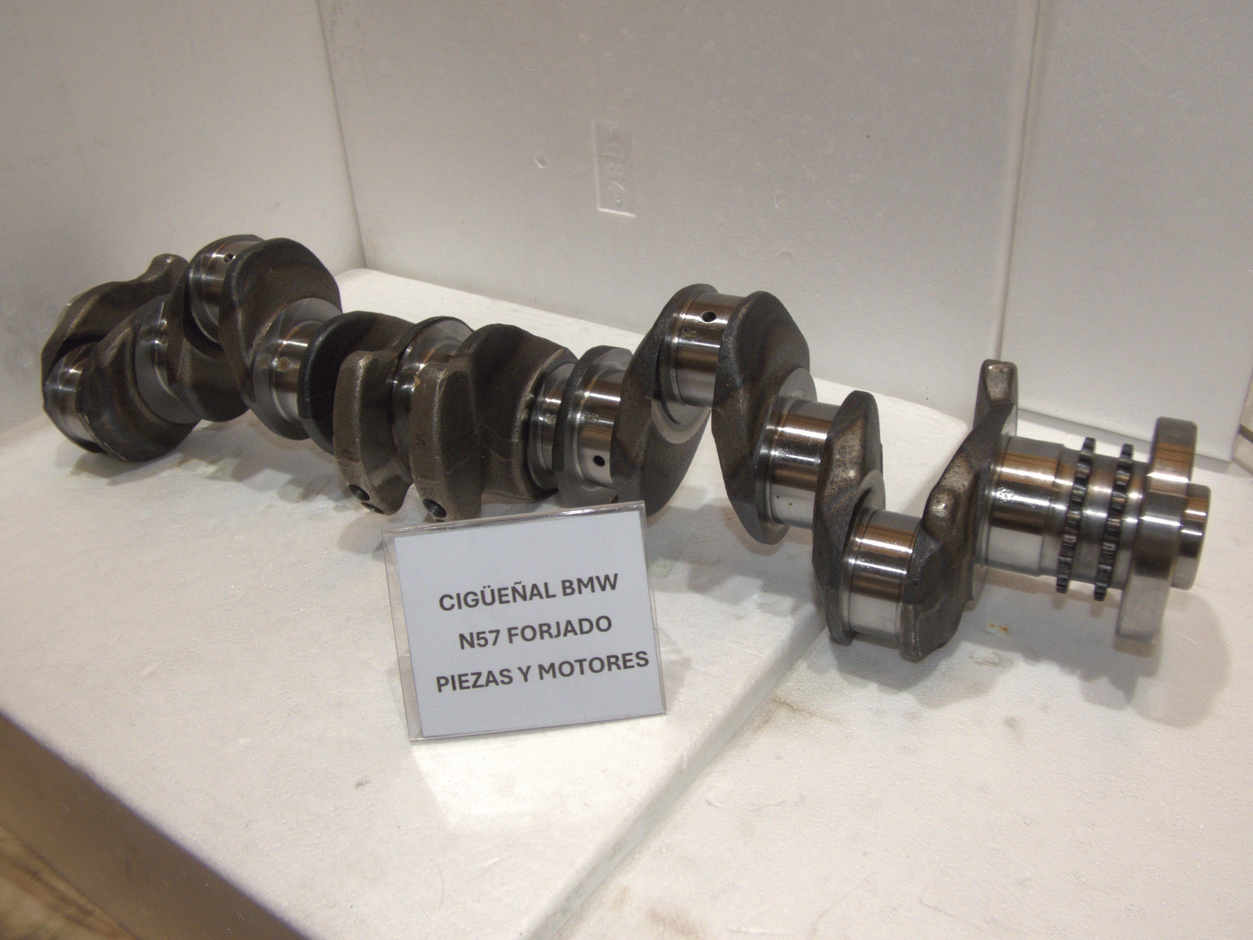 A diferencia de los cigüeñales convencionales, este modelo está fabricado mediante proceso de forjado, lo que permite una estructura molecular del metal mucho más compacta y resistente. El resultado es un componente capaz de soportar altas cargas de torsión, presiones de combustión elevadas y condiciones de trabajo exigentes, características propias de los motores diésel de seis cilindros en línea como el N57